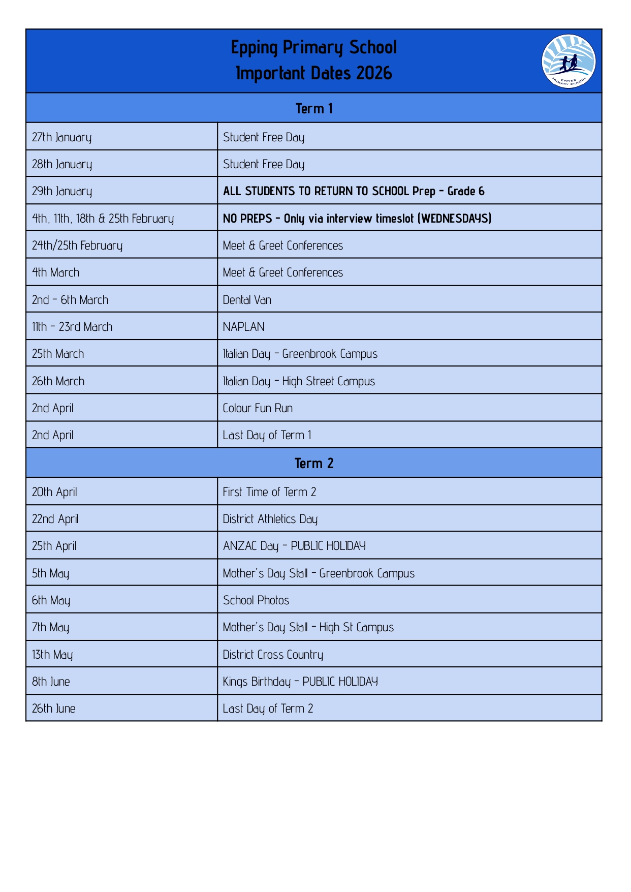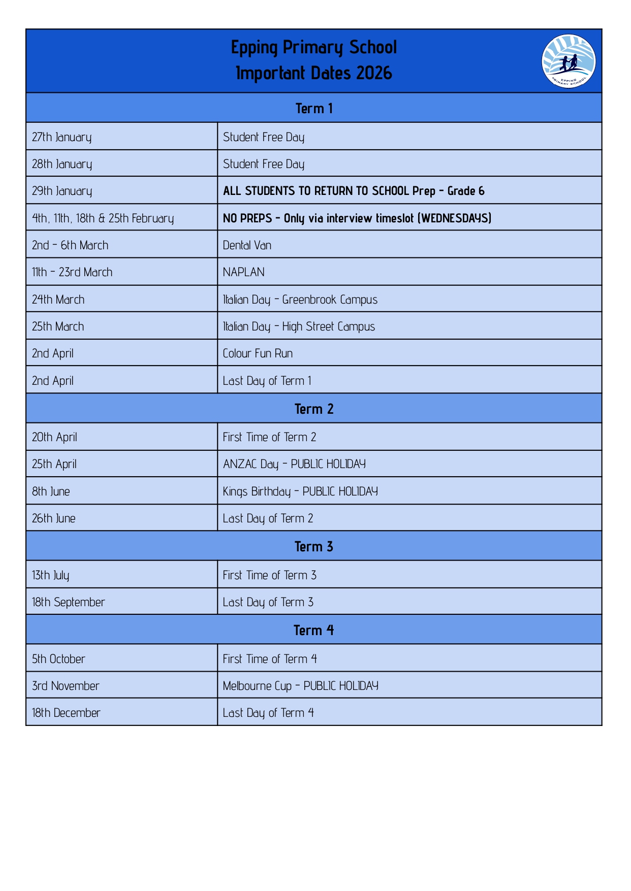 Please read more to check out important dates for 2026. This will be updated on a regular basis.
